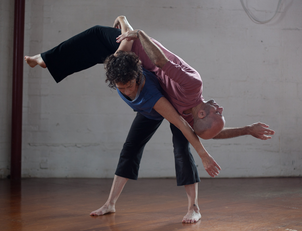 Contact improvisation is organized around an elementary premise: partners invest their balance in mutually following shared points of contact. While that's easy to say, you don't get much of a feel for how it works without actually trying it. However, it's easy to describe how it looks different from other partner practices: