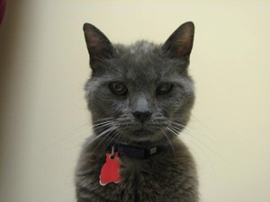 i met gray in the woodsy suburban Fredericksburg neighborhood where i lived, four or five years ago. i learned later that he lurked on the porches of three neighbors throughout the day to avoid an antagonistic neighborhood cat that attacked him and another cat at any opportunity. he wandered out from his evening porch when i would walk by on my customary after-dinner walk. i petted him for a bit and then continued on my way - with this cat following behind. we walked the five or ten minutes to the intersection with a larger street, meandered there for a minute or five, and then we headed back, with him returning to his porch perch when we passed that house.